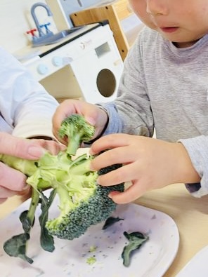 2025.12.11 ブログ 12月の食育 今月はブロッコリーです🥦 ブロッコリーのお話をペープサートで観たあと、実際に触れてみました。 みんな興味津々でした🥦 こうして興味を持つことで、少しずつ食べられる野菜が増えてくると良いです。 一覧へ戻る