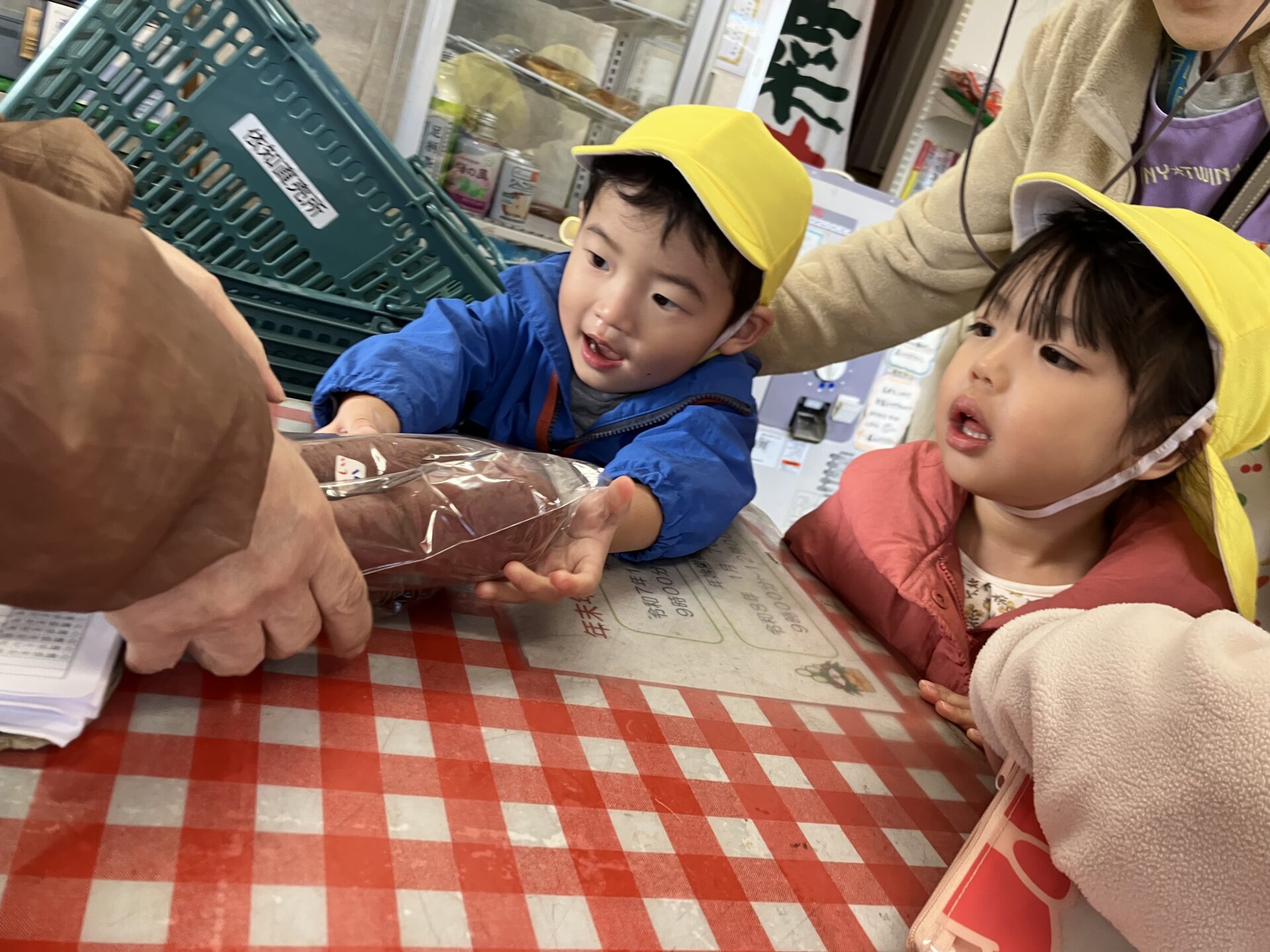2025.12.16 ブログ うさぎ組さん買い物へ行く☺️ うさぎ組さん、近くのJAにさつまいも🍠を買いにお買い物に行きました! お金を、レジで店員さんに渡してお買い物完了! 明日はこのさつまいも🍠でおやつを作るよ! 一覧へ戻る