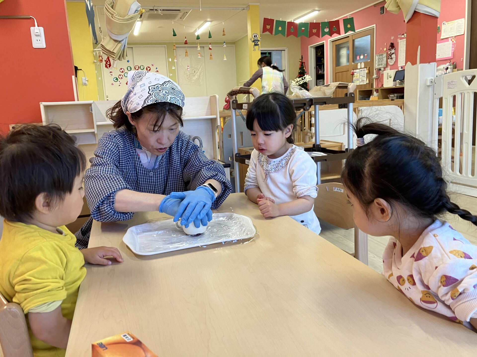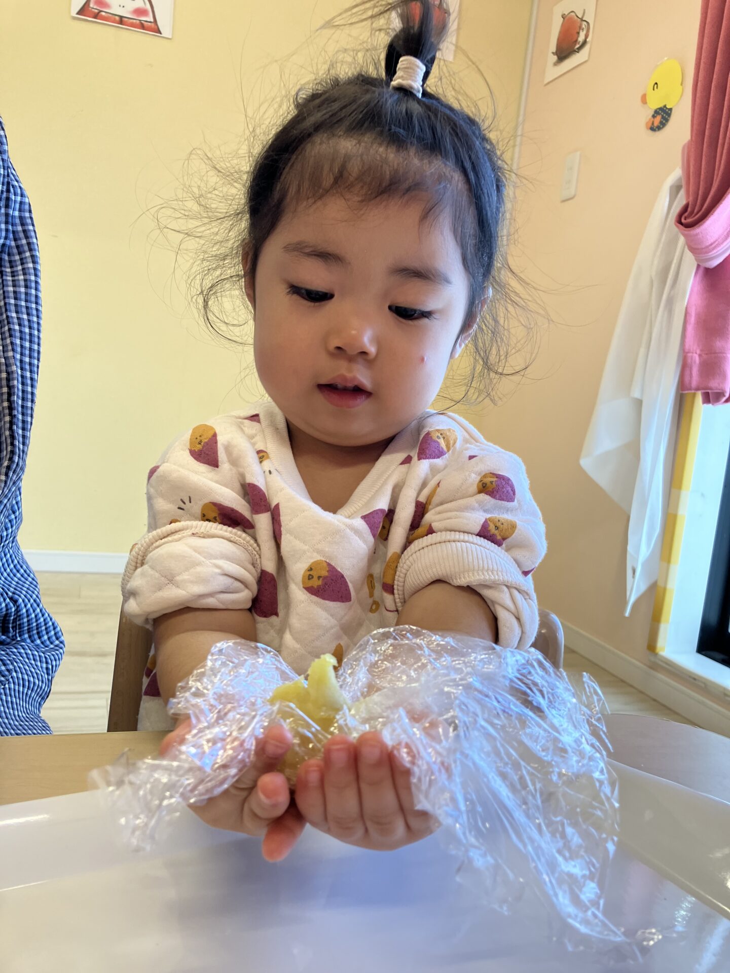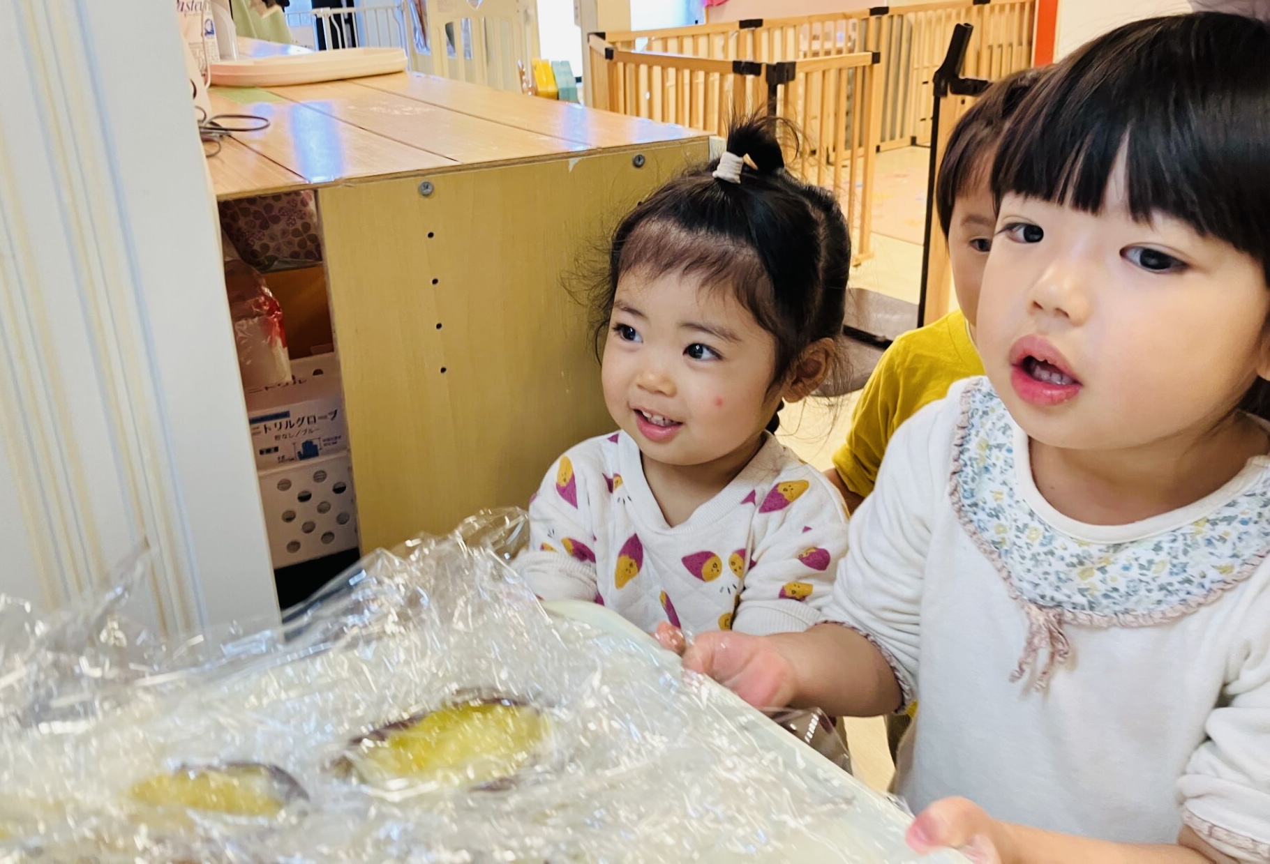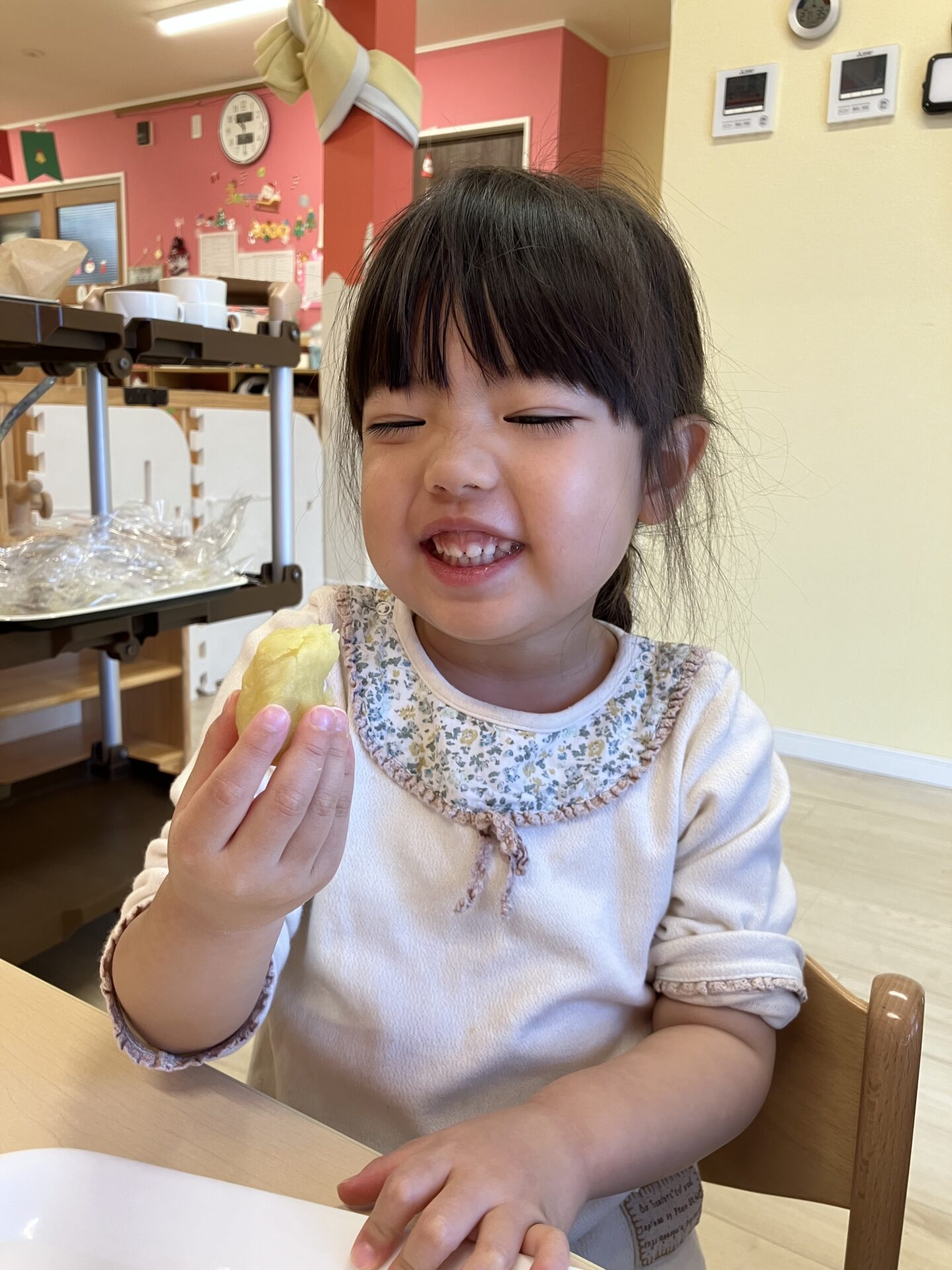 昨日、みんなで買いに行ったさつまいもでおやつを作ったよ!
