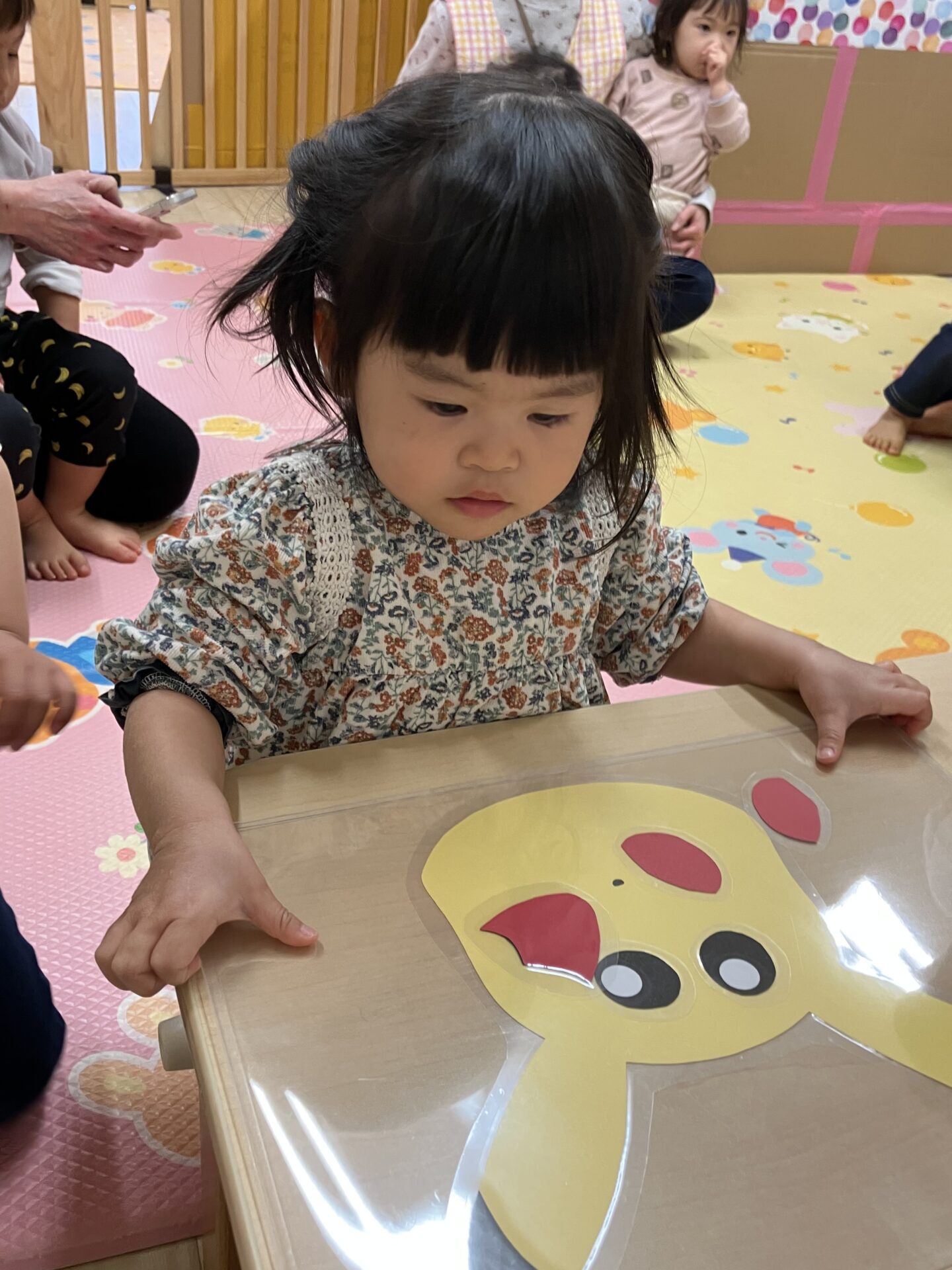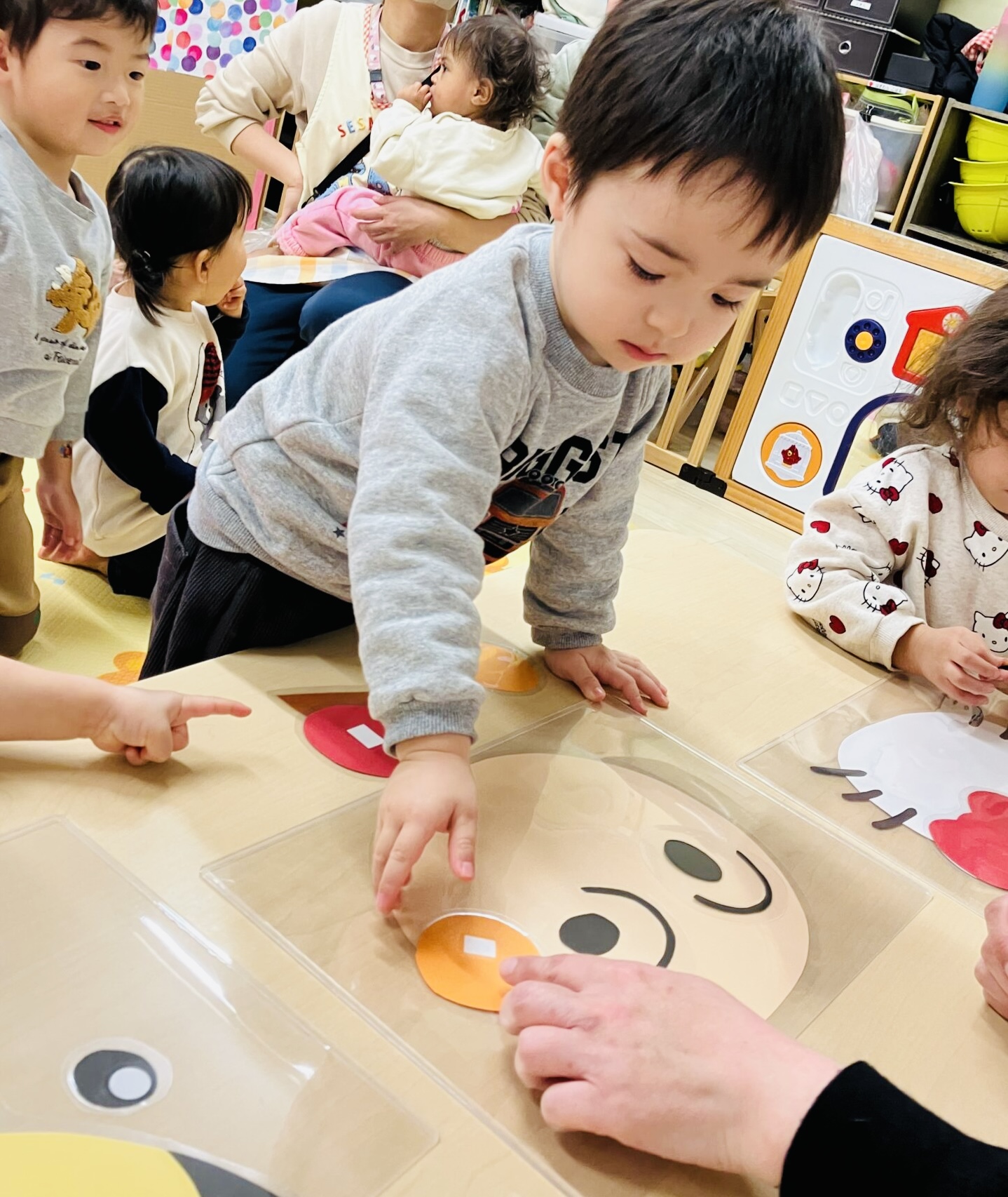 みんなで新年の挨拶をした後は一つ目のお正月遊び、☆福笑い☆をしました。好きなキャラクターを選んで上手に目や鼻、口を付けることが出来ると笑顔いっぱいの子ども達でした🩷
