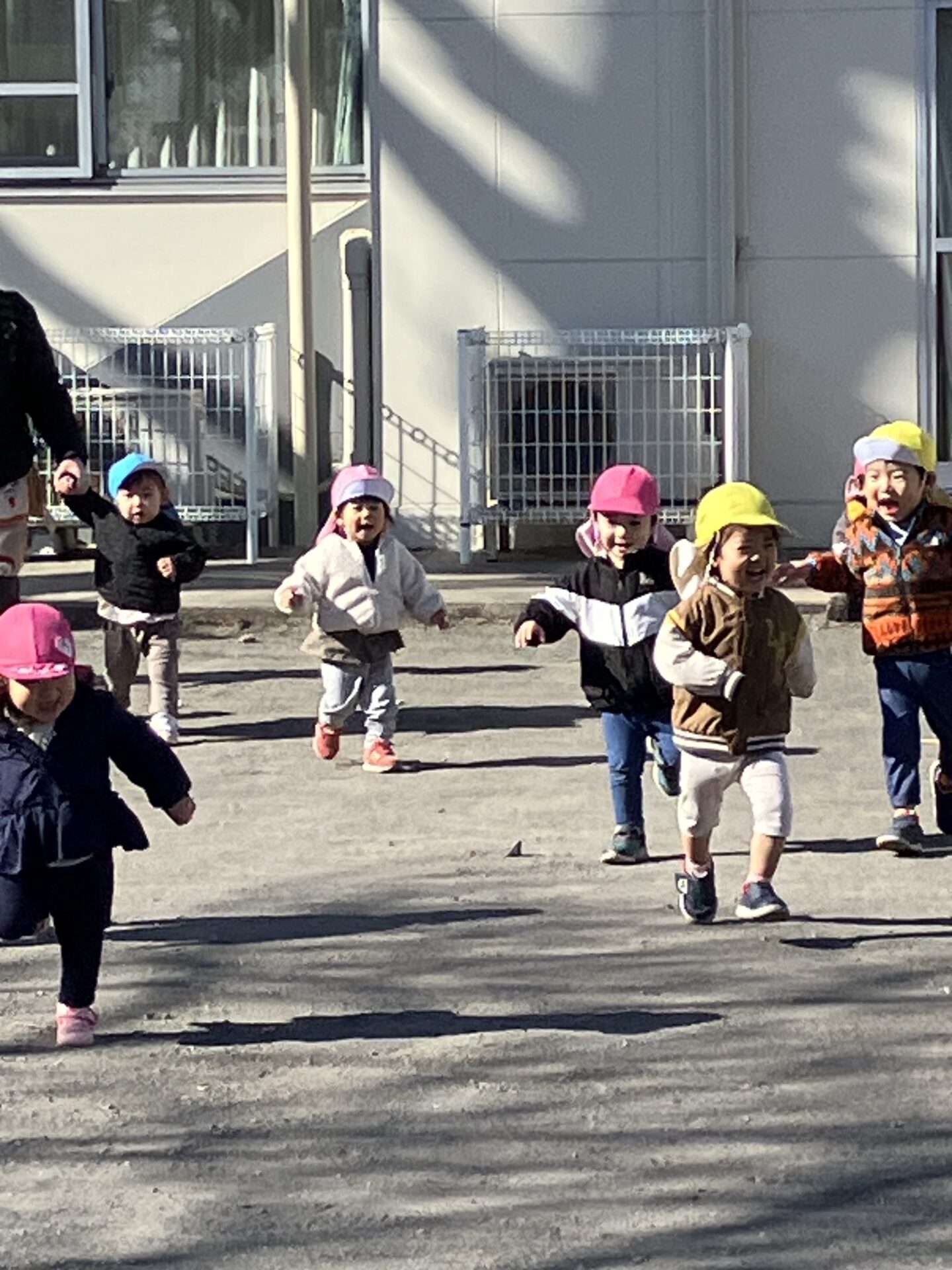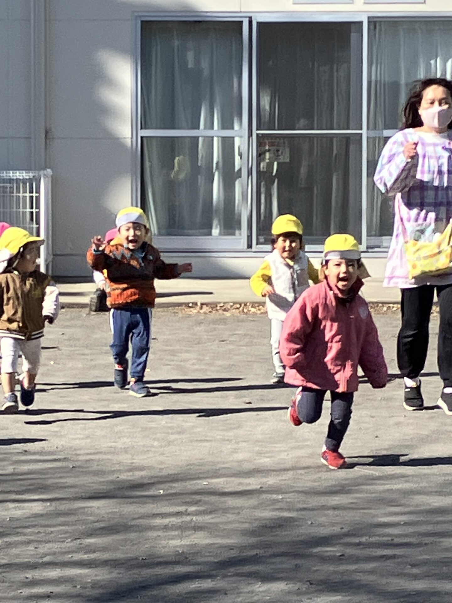 寒くてもへっちゃら、ぱんだ組とうさぎ組でニコニコ笑顔のかけっこ大会💨